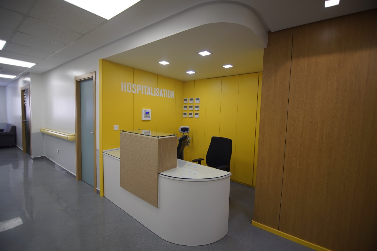 Il est doté de 60 lits d'hospitalisations ainsi que de services médico-techniques comme le bloc opératoire, la radiologie, la réanimation polyvalente, les soins intensifs et le centre de cardiologie, le tout réparti sur 9 étages pour une superficie totale de 4500m2.